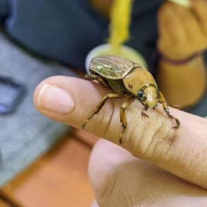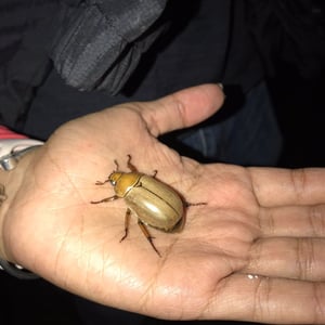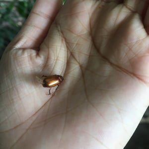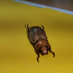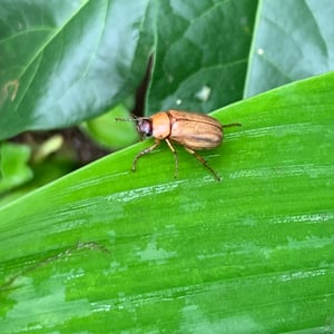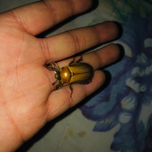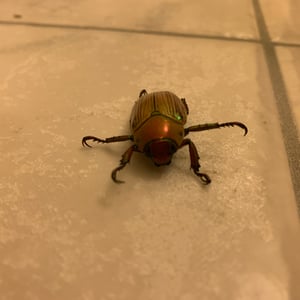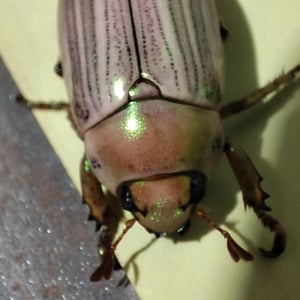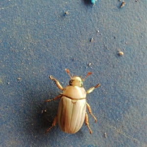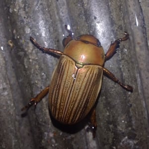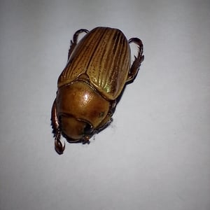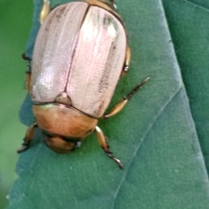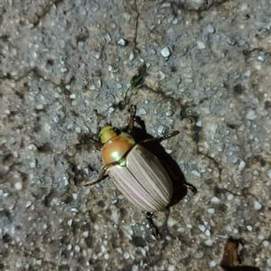 Pelidnota virescens, commonly known as the green June beetle, is a large scarab beetle found in North America. It has a metallic green body with a bronze or copper-colored head and legs. Adults are active during the summer months and are attracted to lights at night. The larvae, known as grubs, feed on the roots of grasses and other plants.