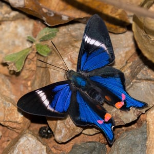 Rhetus periander, the Periander metalmark or variable beautymark, is a butterfly of the family Riodinidae. It is found in most of Central America and South America, ranging from Mexico to Brazil and Argentina.