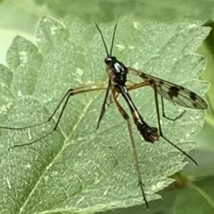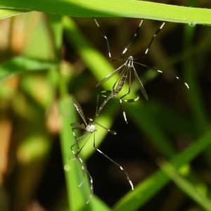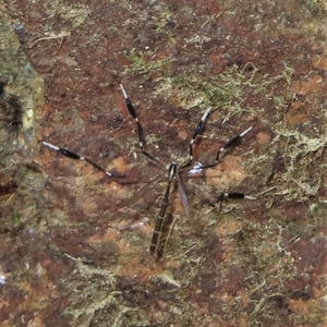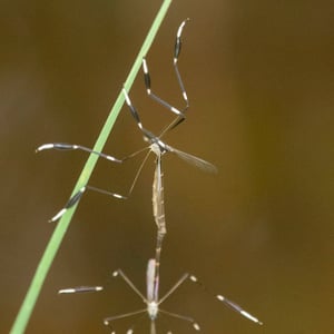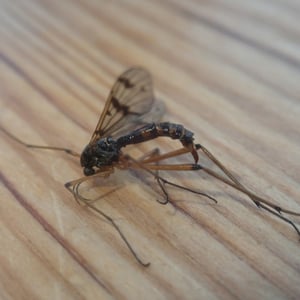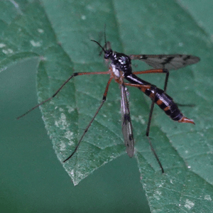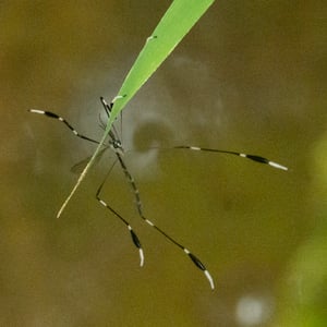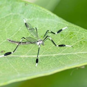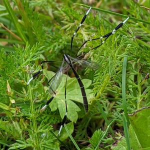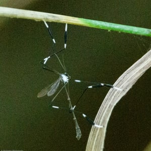 The adults are found most often from late spring through to autumn in shaded, moist environs. Presumably, adults feed little, if at all. Two generations occur per year. The common species of Eastern North America (Bittacomorpha clavipes) is known for the odd habit of spreading out its legs while flying, using expanded, trachea-rich tarsi to waft along on air currents. Why they are called “phantom” crane flies: Their legs are thin and black with white sheaths near the tips, and when they fly under a shady tree, everything disappears except the white spots, appearing and disappearing like a “phantom”.