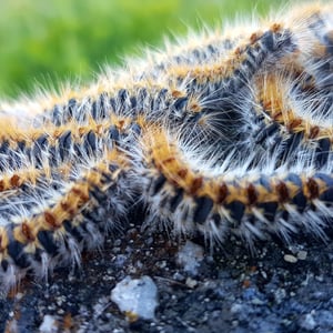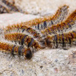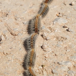 Lengthy processions are formed when fully grown caterpillars abandon their host tree in search of pupation sites, when as many as three hundred caterpillars may travel long distances from the natal tree looking for soft soil in which to bury themselves and form cocoons. During processions, stimuli from setae on the tip of the abdomen of the caterpillar in front serve to hold processions together, taking priority over the trail pheromone or silk.