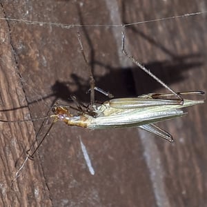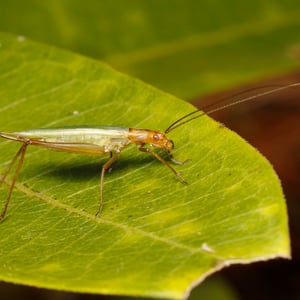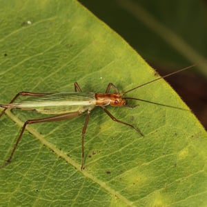 Oecanthus pini, commonly known as the pine tree cricket, is a small insect belonging to the family Gryllidae. It is found in North America, particularly in pine forests. The males of this species produce a distinctive high-pitched chirping sound to attract females during the mating season. Oecanthus pini is known for its ability to camouflage itself among the pine needles, making it difficult to spot.