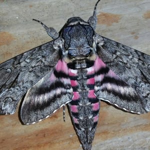Agrius cingulata, the pink-spotted hawkmoth or sweetpotato hornworm, is a moth in the family Sphingidae. The species was first described by Johan Christian Fabricius in 1775.
