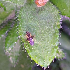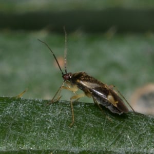 Plagiognathus is a small insect belonging to the family Miridae, commonly known as plant bugs. They are typically less than 5 mm in length and have a slender body shape. Plagiognathus species are known for their distinctive coloration, often displaying a combination of black, yellow, and red markings. These insects are found in various habitats, including grasslands, forests, and agricultural fields, where they feed on plant sap using their piercing-sucking mouthparts.