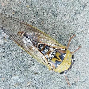 Megatibicen dealbatus, commonly known as the gray cicada, is a large insect belonging to the family Cicadidae. It is characterized by its grayish-brown body and transparent wings with black veins. This species is known for its loud and distinctive buzzing sound, produced by the males to attract females during mating season. Megatibicen dealbatus is commonly found in deciduous forests and woodlands across eastern North America.