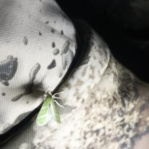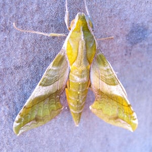 The wingspan is 53–65 mm. The prominent broad chrome-yellow band distinguishes this species from all other Xylophaness. The thorax is green. The abdomen has a thin medial line, interrupted at the base of each segment by a metallic yellow dot. The lateral lines are also present. The thorax and abdomen are maize yellow, with metallic yellow scales, a few of which are also found dorso-laterally.