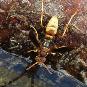 Sting Many wasps are known to use their stinging abilities as a means of tactic defense against diverse predators. The physical stinger is distinguished as the part of the wasp that physically injects venom into offenders. The sting, on the other hand, refers to the actual event. The effectiveness of stings tends to be dependent on the level of pain inflicted over the toxicity or paralyzing ability of certain types of venom. On a pain scale developed by Christopher K. Starr in this cited article, Polistes dorsalis ranks in the 2 range on a 5-point scale (from no pain to traumatically painful) which is pretty consistent in comparison to other Polistes species. A number of factors play into the intensity of sting from each individual wasp. The size of the colony, or the size of the aggregation, effects how easily they are to attack when disturbed or feel threatened. It seems that with larger groups of wasps, less provocation is needed for them to attack. Also, the size of the predator and their pain tolerance would also affect this relative pain scale. Smaller animals typically have smaller thresholds for pain than do larger ones. Toxicity, while not the key determinant of effectiveness also play a role, in that venom of higher toxicity tends to be more painful. Parasitism Elasmus polistis Burks is an ectoparasite, a parasite that lives on the outside of its hosts. Larvae of Polistes wasps have been preyed upon by this brood parasite. Elasmus polistis Burk is even categorized to be a primary parasite of various types of Polistes, specifically within the United States. Female adult E. polistis take advantage of early- stage Polistes dorsalis pupae, when they are still in the capped cells within the nest, by laying their own eggs on top of these immobile Polistes pupae. In one case there were up to 103 E. polistis pupae discovered on one Polistes host. When these parasitic pupae emerge from the egg as larvae, they feed on the P. dorsalis pupae until only inedible materials remain. Their excreted fecal matter is then used to build a wall of defense on the cell's closed end to protect themselves against potential Polistes wasps that would want to attack them.