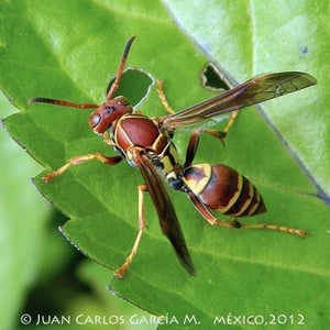 Polistes dorsalis is a species of social wasps that can be found throughout various parts of North America. It is classified under the Vespidae within the genus of Polistes. Male Polistes dorsalis wasps can be distinguished from other Polistes species by their distinctly prominent median tubercle of sternum 7. Both sexes can also be recognized due to their v- shaped yellow markings on their head. They are distributed widely across North America and can be found in sheltered nests, typically closer to the ground. These wasps live in a dominance hierarchy in which the queen's role differs from that of ordinary workers. When threatened, these wasps can deliver moderately painful stings. Their venom might also be of human interest for their antimicrobial uses.