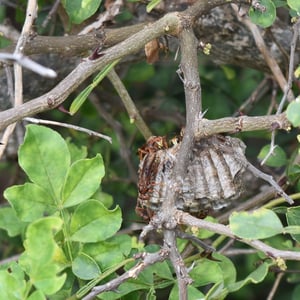 Polistes dorsalis are common to the southeastern region of the United States, as it has been recorded in various states like MA, NY, and FL. This species of wasp are also found to reside throughout North and Central America, for example off the coast of the Bahamas. There have also been groups reported off the coasts of Mexico.It is characteristic for their nests to be constructed in areas that are highly sheltered and inconspicuous, making them harder for predators to find. For this reason, rock piles and hollowed out logs along with other shelters found close to the ground make good building sites for P. dorsalis nests. However, they can also be commonly found in more open field areas. Within urban areas, P. dorsalis have also chosen to build nests within shrubbery and on the lower border of roofs. Nests are generally small and open- faced with no envelope surround the structure. They are typically 1- tiered and can house up to 75 adult wasps.