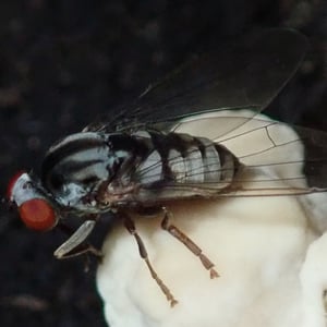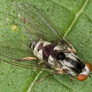 Polyporivora picta is a small, brightly colored insect belonging to the order Coleoptera. It is commonly known as the painted polypore beetle due to its vibrant patterns and colors. This species is typically found in forested areas, where it feeds on the fruiting bodies of polypore fungi. Its unique appearance serves as a warning to potential predators, as it contains toxic compounds for defense.