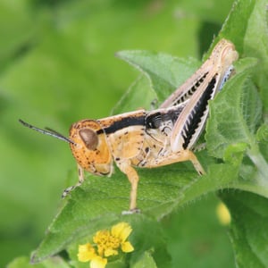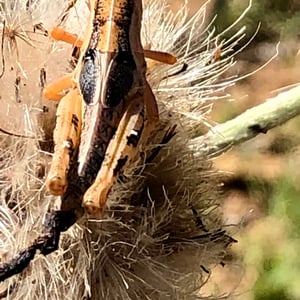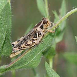 Melanoplus ponderosus, commonly known as the ponderous grasshopper, is a large insect belonging to the family Acrididae. It is primarily found in the western regions of North America, particularly in grasslands and open woodlands. This species is characterized by its robust body, reaching lengths of up to 2 inches, and its dark brown or black coloration. Ponderous grasshoppers are herbivorous, feeding on a variety of grasses and plants.