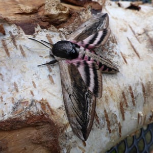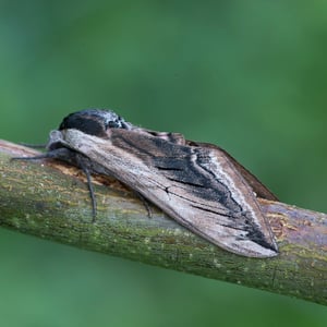 The male privet hawk moth can make a hissing sound, if disturbed, by rubbing together a set of scales and spines at the end of its abdomen.