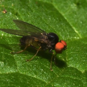 Protoclythia modesta is a small insect belonging to the order Diptera, commonly known as a fly. It has a slender body with a length of approximately 5 millimeters. The species is characterized by its dark brown coloration and transparent wings. P. modesta is often found in damp environments, such as forests or near bodies of water, where it feeds on decaying organic matter.