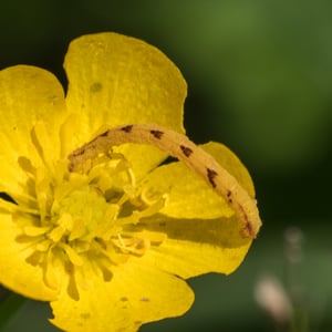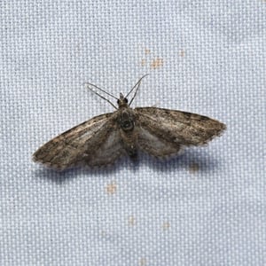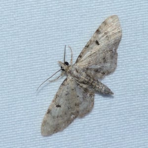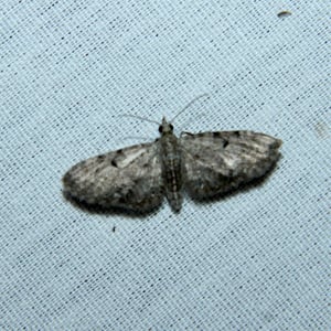 Eupithecia is a large genus of moths of the family Geometridae. There are hundreds of described species, found in all parts of the world (with 45 in the British Isles alone), and new species are discovered on a regular basis. Eupithecia species form the bulk of the group commonly known as pugs. They are generally small with muted colours and specific identification can be difficult. As a group they are easily identified by their narrow wings held flat at 90° to the body with the hindwings almost hidden behind the forewings. The larvae of many species feed on the flowers and seeds of their food plants rather than the foliage. Many species have a very specific food plant. Some Hawaiian Eupithecia as caterpillars are predators of other insects (E. orichloris, E. staurophragma, E. scoriodes). They mimic twigs but when sensitive hairs on their backs are triggered, they quickly grab the insects touching them. The defensive behavior of snapping may have pre-adapted Hawaii's ancestral Eupithecia for shifting to predation from feeding on pollen. Also, insect predators that behave in this way are lacking in Hawaii's fauna.