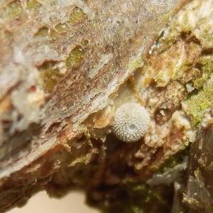 Eggs are laid singly at the base of oak buds in late summer ready to hatch the following spring as the buds break. Both sessile oak Quercus petraea and pedunculate oak Quercus robur, Britain's two native oaks are used and also some introduced species such as Turkey oak Quercus cerris and evergreen oak Quercus ilex. In winter the eggs are easily found on close examination of bare branches. The caterpillar is fully developed inside the egg after two or three weeks but doesn't hatch until the spring whereupon it burrows into the flower buds to feed safely concealed. As it gets larger and the buds open it spins a silken retreat and feeds only at night. Pupation usually takes place in the leaf litter where it is tended by ants who bury them, but also sometimes in a crevice in the bark of the foodplant. There is one brood a year with adults on the wing in July and August.