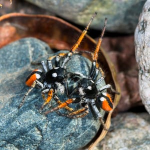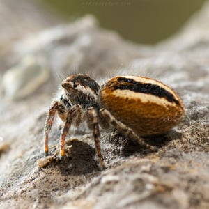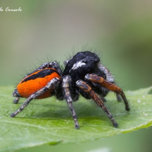 These spiders can be found in the warm spring and summer months. The young spiders become adults around July. Like the other jumping spiders, this species does not use the canvas to capture prey. Philaeus chrysops hunts freely, quickly jumping on prey and blocking it with claws and pedipalps. Hunting takes place only during the day, in the hot hours. When the adult male has found a female, it will start a courtship, shaking forelegs in the air and drumming on the ground with the abdomen and pedipalps. After the mating, females lay the eggs in a cocoon, watching them until hatching.