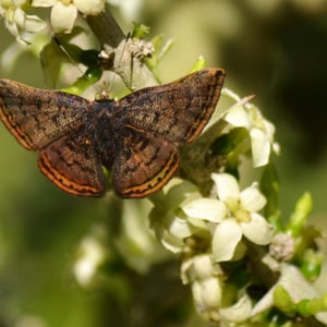 Caria ino, the red-bordered metalmark, is a species of metalmark in the butterfly family Riodinidae. It is found in North America. The MONA or Hodges number for Caria ino is 4396.