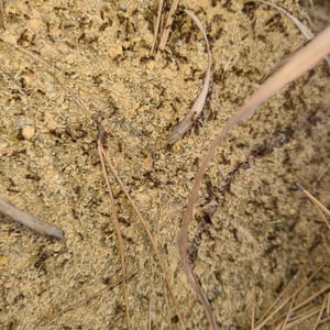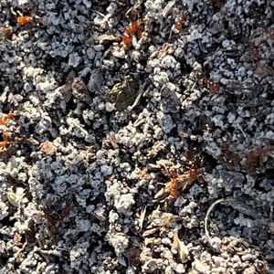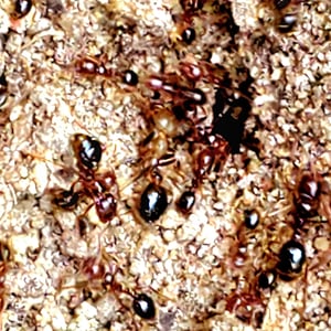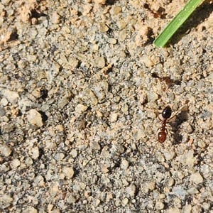 Colonies of the red imported fire ant have tunneling surfaces that protrude out of the surfaces where workers forage. These areas of protrusion tend to be within their own territory, but greater ant colonisation can affect this. Tunnels are designed to allow effective body, limb and antennae interactions with walls, and a worker can also move exceptionally fast inside them (more than nine bodylengths per second). The holes exit out of any point within the colony's territory, and foraging workers may need to travel half a metre to reach the surface. Assuming the average forager travels 5 m, over 90% of foraging time is inside the tunnels during the day and rarely at night. Workers forage in soil temperatures reaching 27 °C (80 °F) and surface temperatures of 12–51 °C (53–123 °F). Workers exposed to temperatures of 42 °C (107 °F) are at risk of dying from the heat. The rate of workers foraging drops rapidly by autumn, and they rarely emerge during winter. This may be due to the effects of soil temperature, and a decreased preference for food sources. These preferences only decrease when brood production is low. In the northern regions of the United States, areas are too cold for the ant to forage, but in other areas such as Florida and Texas, foraging may occur all year round. When it is raining, workers do not forage outside, as exit holes are temporarily blocked, pheromone trails are washed away, and foragers may be physically struck by the rain. The soil's moisture may also affect the foraging behaviour of workers. When workers are foraging, it is characterised by three steps: searching, recruitment, and transportation. Workers tend to search for honey more often than other food sources, and the weight of food has no impact on searching time. Workers may recruit other nestmates if the food they have found is too heavy, taking as much as 30 minutes for the maximum number of recruited workers to arrive. Lighter food sources take less time and are usually transported rapidly. Foraging workers become scouts and search solely for food outside the surface, and may subsequently die two weeks later from old age. Workers communicate by a series of semiochemicals and pheromones. These communication methods are used in a variety of activities, such as nestmate recruitment, foraging, attraction, and defence; for example, a worker may secrete trail pheromones if a food source it discovered is too large to carry. These pheromones are synthesized by the Dufour's gland and may trail from the discovered food source back to the nest. The components in these trail pheromones are also species-specific to this ant only, in contrast to other ants with common tail pheromones. The poison sack in this species has been identified as being the novel storage site of the queen pheromone; this pheromone is known to elicit orientation in worker individuals, resulting in the deposition of brood. It is also an attractant, where workers aggregate toward areas where the pheromone has been released. A brood pheromone is possibly present, as workers are able to segregate brood by their age and caste, which is followed by licking, grooming and antennation. If a colony is under attack, workers will release alarm pheromones. However, these pheromones are poorly developed in workers. Workers can detect pyrazines which are produced by the alates; these pyrazines may be involved in nuptial flight, as well as an alarm response. Red imported fire ants can distinguish nestmates and non-nestmates through chemical communication and specific colony odours. Workers prefer to dig into nest materials from their own colony and not from soil in unnested areas or from other red imported fire ant colonies. One study suggests that as a colony's diet is similar, the only difference between nested and unnested soil was the nesting of the ants themselves. Therefore, workers may transfer colony odour within the soil. Colony odour can be affected by the environment, as workers in lab-reared colonies are less aggressive than those in the wild. Queen-derived cues are able to regulate nestmate recognition in workers and amine levels. However, these cues do not play a major role in colony-level recognition, but they can serve as a form of caste-recognition within nests. Workers living in monogyne societies tend to be extremely aggressive and attack intruders from neighbouring nests. In queenless colonies, the addition of alien queens or workers does not increase aggression among the population.