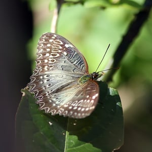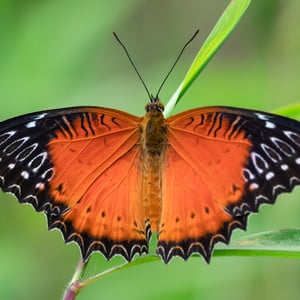Cethosia biblis is medium-sized butterfly, with a wingspan reaching about 8 - 9 cm. In this species the sexes are dimorphic. In males the dorsal sides of the wings are bright orange red, framed by a black outline with white spots. The undersides range from bright red to pale brown, interlaced by black and white. This astonishing pattern helps to disguise the shape of the butterfly, while the intense colour of the dorsal sides of the wings is a warning to predators that the red lacewing has a bad taste, deriving from the poisonous host plants of the caterpillars. The dorsal sides of the wings of the females are greyish-brownish with black spots and white bands and spots on the black margins. Caterpillars have several reddish, black and white stripes, a black head and long black spikes that contain poison. In fact they mainly feed on poisonous climbing plants, mainly Passiflora species (P. cochinchinensis, P. moluccana, etc.).