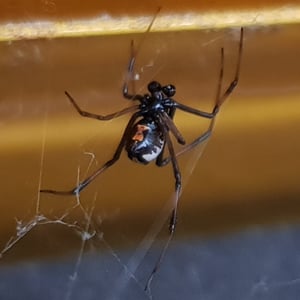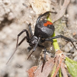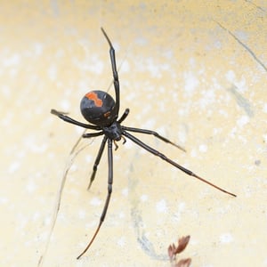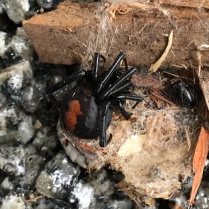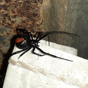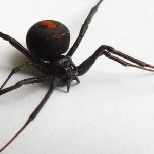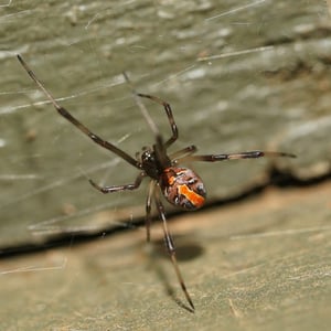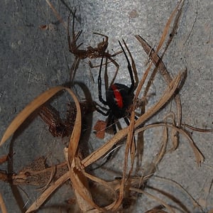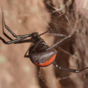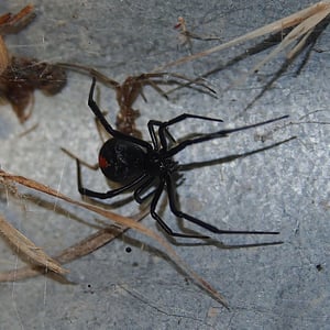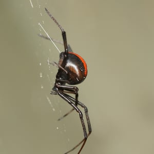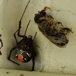 The redback spider (Latrodectus hasselti), also known as the Australian black widow, is a species of highly venomous spider believed to originate in South Australia or adjacent Western Australian deserts, but now found throughout Australia, Southeast Asia and New Zealand, with colonies elsewhere outside Australia. It is a member of the cosmopolitan genus Latrodectus, the widow spiders. The adult female is easily recognised by her spherical black body with a prominent red stripe on the upper side of her abdomen and an hourglass-shaped red/orange streak on the underside. Females usually have a body length of about 10 mm, while the male is much smaller, being only 3 – long. Mainly nocturnal, the female redback lives in an untidy web in a warm sheltered location, commonly near or inside human residences. It preys on insects, spiders and small vertebrates that become ensnared in its web. It kills its prey by injecting a complex venom through its two fangs when it bites, before wrapping them in silk and sucking out the liquefied insides. Often, it first squirts its victim with what resembles 'superglue' from its spinnerets, immobilising the prey by sticking the victim's limbs and appendages to its own body. The redback spider then trusses the victim with silk. Once its prey is restrained, it is bitten repeatedly on the head, body and leg segments and is then hauled back to the redback spider's retreat. Sometimes a potentially dangerous victim can be left to struggle for hours until it is exhausted enough to approach safely. Male spiders and spiderlings often live on the periphery of the female spiders' web and steal leftovers. Other species of spider and parasitoid wasps prey on this species. The redback is one of a number of arachnids that usually display sexual cannibalism while mating. After mating sperm is stored in the spermathecae, organs of the female reproductive tract, and can be used up to two years later to fertilise several clutches of eggs. Each clutch averages 250 eggs and is housed in a round white silken egg sac. The redback spider has a widespread distribution in Australia, and inadvertent introductions have led to established colonies in New Zealand, the United Arab Emirates, Japan and greenhouses in Belgium. The redback is one of the few spider species that can be seriously harmful to humans, and its liking for habitats in built structures has led it to being responsible for a large number of serious spider bites in Australia. Predominantly neurotoxic to vertebrates, the venom gives rise to the syndrome of latrodectism in humans; this starts with pain around the bite site, which typically becomes severe and progresses up the bitten limb and persists for over 24 hours. Sweating in localised patches of skin occasionally occurs and is highly indicative of latrodectism. Generalised symptoms of nausea, vomiting, headache, and agitation may also occur and indicate severe envenomation. An antivenom has been available since 1956.