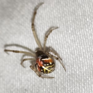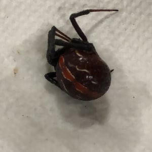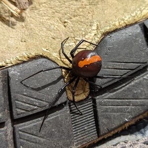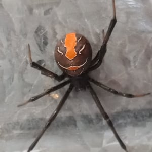 The common name "redback" is derived from the distinctive red stripe along the dorsal aspect of its abdomen. Other common names include red-striped spider, red-spot spider, jockey spider, Murra-ngura spider, Kapara spider and the Kanna-jeri spider.