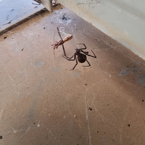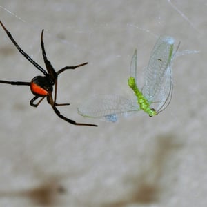 The black house spider (Badumna insignis), the cellar spider (Pholcus phalangioides) and the giant daddy-long-legs spider (Artema atlanta) are known to prey on the redback spider, and redbacks are often absent if these species are present in significant numbers. Agenioideus nigricornis, a spider wasp, is a parasitoid of the adult redback. Other wasps of the families Eurytomidae and Ichneumonidae parasitise redback eggs, and mantid lacewings (Neuroptera and Mantispidae) prey on redback eggs.