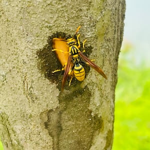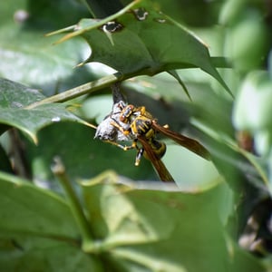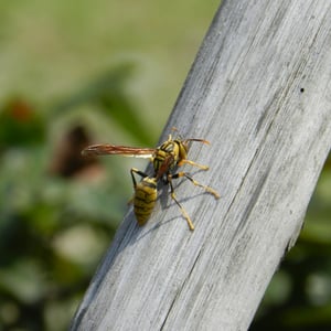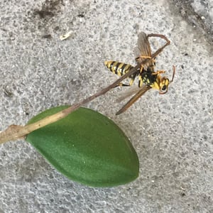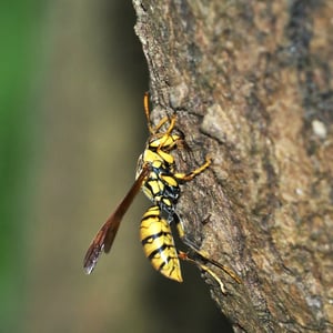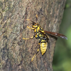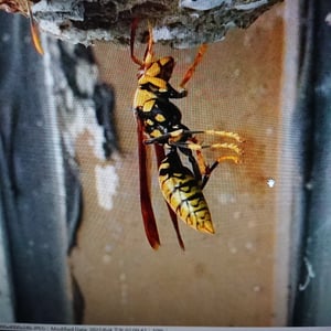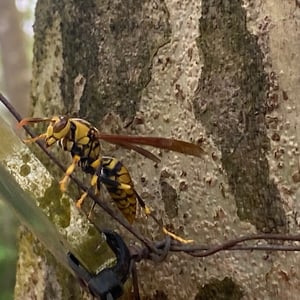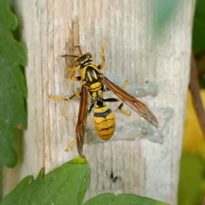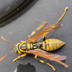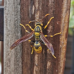 Polistes rothneyi is a species of paper wasp found in Southeast Asia. It is known for its distinctive black and yellow coloration, with a slender body and long legs. These wasps are social insects, forming small colonies with a dominant queen and several workers. They build intricate nests made of paper-like material, often found in trees or man-made structures.