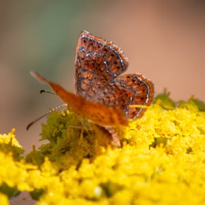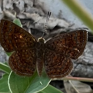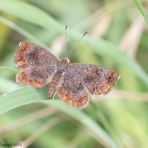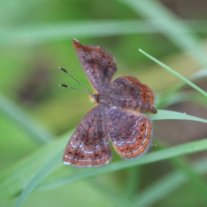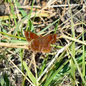 Calephelis perditalis, the rounded metalmark or lost metalmark, is a butterfly in the family Riodinidae. It is found in Texas in the United States and Mexico, south to Venezuela. The species was first described by William Barnes and James Halliday McDunnough in 1918. The wingspan is 18–24 mm. The upperside of the wings is brown with indistinctly checkered fringes. There may be a dark median band. Adults feed on flower nectar, including the nectar of Chromolaena odorata. The larvae feed on Chromolaena odorata and Eupatorium glabratum.