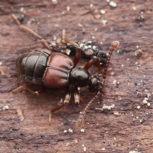 Staphylinidae, commonly known as rove beetles, are a diverse family of insects belonging to the order Coleoptera. They are characterized by their elongated bodies and short elytra, which leave most of their abdomen exposed. Rove beetles are found worldwide and inhabit a wide range of habitats, including soil, leaf litter, and decaying organic matter. They are known for their predatory behavior, feeding on other insects and small invertebrates.