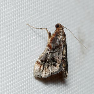 Scenedra decoratalis is a small insect belonging to the family Scenedridae. It is commonly known as the decorated bark beetle due to its striking appearance. This species is characterized by its elongated body, black coloration, and intricate patterns of yellow or orange markings on its elytra. It is typically found in forests, where it feeds on decaying wood and plays a vital role in nutrient recycling.