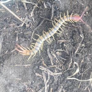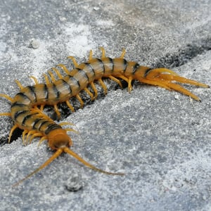The Scolopendridae are a family of large centipedes (class Chilopoda). Nearly all species in this family have four ocelli (simple eyes) on each side of the head and only 21 pairs of legs, but there are exceptions: two scolopendrid species feature more legs (Scolopendropsis bahiensis, with 21 or 23 leg pairs, and S. duplicata, with 39 or 43 leg pairs), and some scolopendrid species are eyeless and blind (e.g., Cormocephalus sagmus, C. pyropygus, and C. delta). Two Asian members of this family, Scolopendra cataracta and Rhysidia ceylanica, are known to show amphibious behaviour.