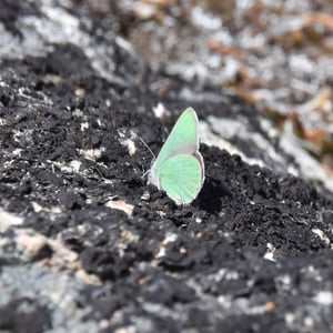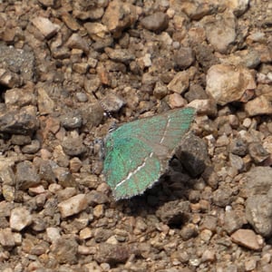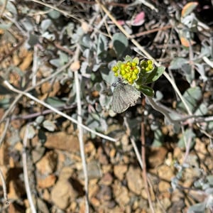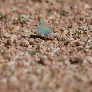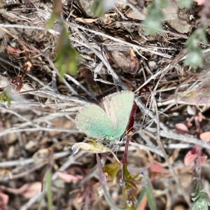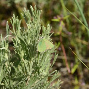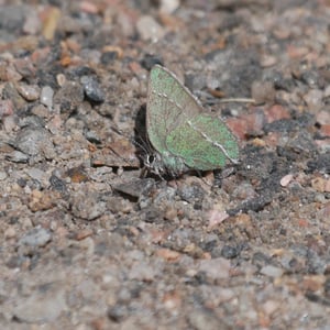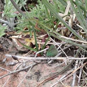Callophrys sheridanii remains within a range of approximately 6000 - 10000 ft, living in such environments as sagebrush scrub, dry, brushy hillsides in badlands, chaparral, woodlands, subalpine scree, open hillsides, and on canyon slopes and washes.