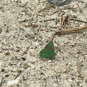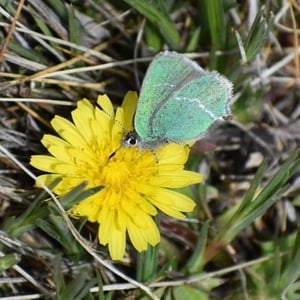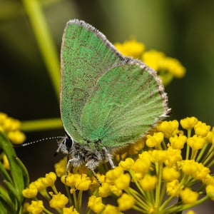 Callophrys sheridanii, the Sheridan's hairstreak and Sheridan's green hairstreak, is a butterfly in the family Lycaenidae. It is found in North America along the south coast of British Columbia and parts of Nevada, Arizona, Saskatchewan, North Dakota, and New Mexico. In 2009, this species was adopted as the U.S. state butterfly for Wyoming.
