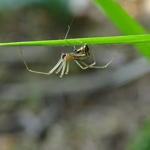 Neriene litigiosa, commonly known as the labyrinth spider, is a species of spider belonging to the family Linyphiidae. It is found in Europe and North America, typically inhabiting grassy areas and meadows. This spider is known for its intricate web, which resembles a labyrinth, hence its common name. Neriene litigiosa is a small spider, with females measuring around 5-7 mm in length, while males are slightly smaller.