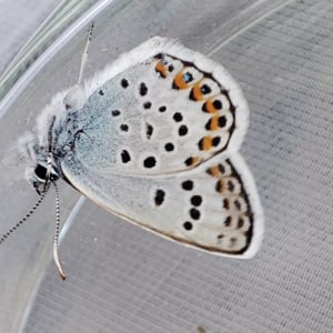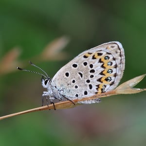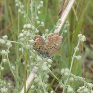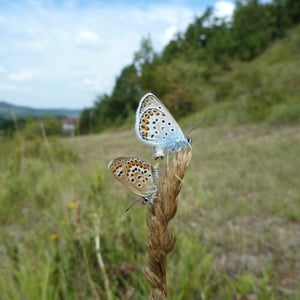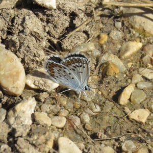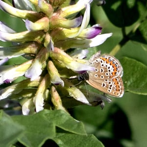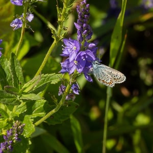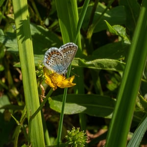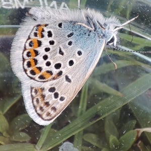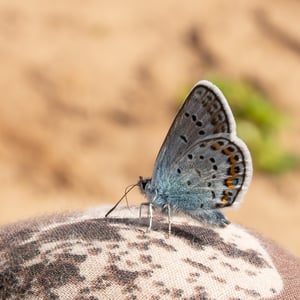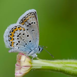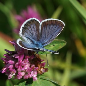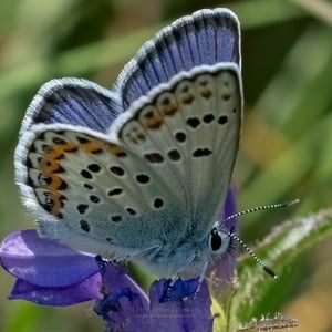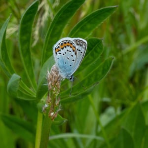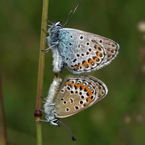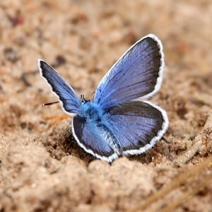 The silver-studded blue (Plebejus argus) is a butterfly in the family Lycaenidae. It has bright blue wings rimmed in black with white edges and silver spots on its hindwings, lending it the name of the silver-studded blue. P. argus can be found across Europe and east across the Palearctic, but is most often studied in the United Kingdom in which the species has experienced a severe decline in population due to habitat loss and fragmentation. P. argus engages in mutualism with ants that contribute to the butterflies' reproductive fitness by providing protection from predation and parasitism from the point of egg laying to their emergence as adults. P. argus adults emerge in the end of June and beginning of July and engage in flight into the beginning of August. The butterfly is adaptable to different habitats and is found in heathland, mossland, and limestone grassland. Tending towards a sedentary lifestyle and typically flying less than 20 m a day, P. argus maintains a small radius home range. Their habitats lend themselves well to both foraging and egg laying as the host plants are ubiquitous in all three environments they occupy.