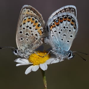 Adult P. argus tend to be very sedentary, only moving around 20 m every day. For this reason, the butterflies colonize on discrete territory and patches of land. Some butterflies, though, disperse and move over a kilometer between colonies. This is rare, however, as these butterflies tend to form metapopulations.