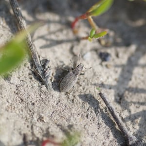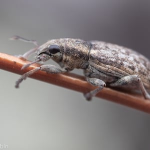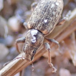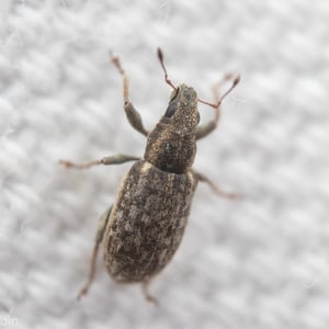 Sitona is a genus of small beetles belonging to the family Curculionidae, commonly known as weevils. These insects are typically found in agricultural fields and grasslands. Sitona weevils are characterized by their elongated bodies, curved snouts, and distinct coloration, often featuring a combination of black, brown, and gray. They are known to feed on the roots of leguminous plants, causing damage to crops such as peas, beans, and clover.