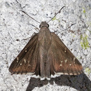 Skippers are a family of the Lepidoptera (moths and butterflies) named the Hesperiidae. Being diurnal, they are generally called butterflies. They were previously placed in a separate superfamily, Hesperioidea; however, the most recent taxonomy places the family in the superfamily Papilionoidea, the butterflies. They are named for their quick, darting flight habits. Most have their antenna tips modified into narrow, hook-like projections. Moreover, skippers mostly have an absence of wing-coupling structure available in most moths. More than 3500 species of skippers are recognized, and they occur worldwide, but with the greatest diversity in the Neotropical regions of Central and South America.