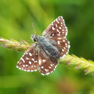 Traditionally, the Hesperiidae were placed in a monotypic superfamily Hesperioidea, because they are morphologically distinct from other Rhopalocera (butterflies), which mostly belong to the typical butterfly superfamily Papilionoidea. The third and rather small butterfly superfamily is the moth-butterflies (Hedyloidea), which are restricted to the Neotropics, but recent phylogenetic analyses suggest the traditional Papilionoidea are paraphyletic, thus the subfamilies should be reorganised to reflect true cladistic relationships. Collectively, these three groups of butterflies share many characteristics, especially in the egg, larval, and pupal stages. Nevertheless, skippers have the antennae clubs hooked backward like a crochet hook, while the typical butterflies have club-like tips to their antennae, and moth-butterflies have feathered or pectinate (comb-shaped) antennae similar to moths. Skippers also have generally stockier bodies and larger compound eyes than the other two groups, with stronger wing muscles in the plump thorax, in this resembling many moths more than the other two butterfly lineages do. Unlike, for example, the Arctiinae, though, their wings are usually small in proportion to their bodies. Some have larger wings, but only rarely as large in proportion to the body as in other butterflies. When at rest, skippers keep their wings usually angled upwards or spread out, and only rarely fold them up completely. The wings are usually well-rounded with more or less sharply tipped forewings. Some have prominent hindwing tails, and others have more angled wings; the skippers' basic wing shapes vary not much by comparison to the Papilionoidea, though. Most have a fairly drab coloration of browns and greys; some are more boldly black-and-white. Yellow, red, and blue hues are less often found, but some largely brown species are quite richly colored, too. Green colors and metallic iridescence are generally absent. Sexual dichromatism is present in some; males may have a blackish streak or patch of scent scales on their forewings. Many species of skippers look very alike. For example, some species in the genera Amblyscirtes, Erynnis (duskywings), and Hesperia (branded skippers) cannot currently be distinguished in the field even by experts. The only reliable method of telling them apart involves dissection and microscopic examination of the genitalia, which have characteristic structures that prevent mating except between conspecifics.
