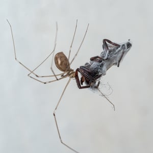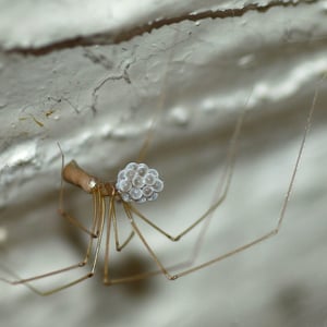 Pholcus phalangioides, commonly known as daddy long-legs spider or long-bodied cellar spider, is a spider of the family Pholcidae. It is also known as the skull spider, since its cephalothorax resembles a human skull. This is the only spider species described by the Swiss entomologist Johann Kaspar Füssli, who first recorded it in 1775. Its common name of "daddy long-legs" should not be confused with a different arachnid group with the same common name, the harvestman (Opiliones). Females have a body length of about 8 mm while males tend to be slightly smaller. The length of the spider's legs are on average 5 or 6 times the length of its body. Pholcus phalangioides has a habit of living on the ceilings of rooms, caves, garages or cellars. This spider species is considered beneficial in parts of the world because it preys on other spiders, including species considered dangerous such as redback spiders. However, when living in human buildings, it will primarily attack, kill and eradicate native spider species and, therefore, this invasive spider species has already been considered as very dangerous for the native spider fauna. Pholcus phalangioides is known to be harmless to humans and a potential for the medicinal use of their webs has been reported.