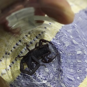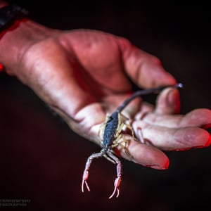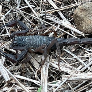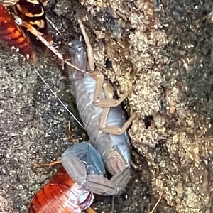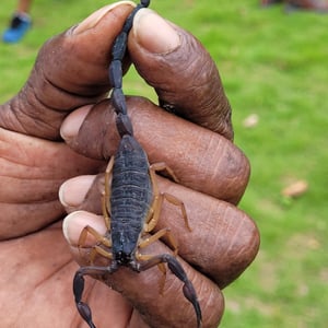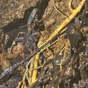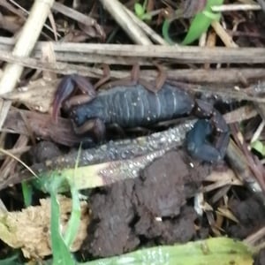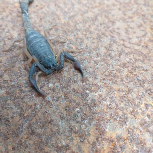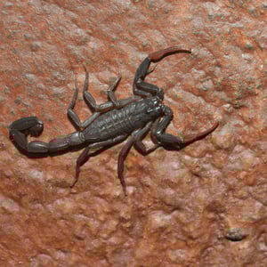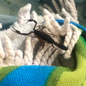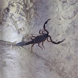 This scorpion feeds on insects such as roaches. Captive scorpions can be fed termites or crickets.