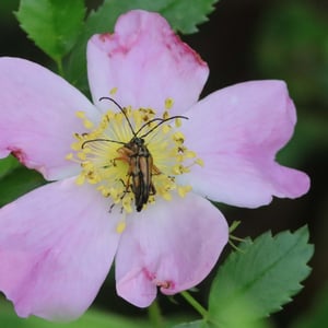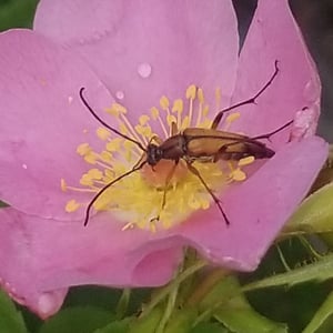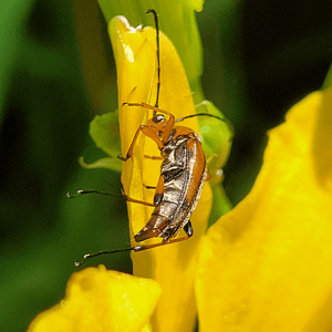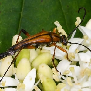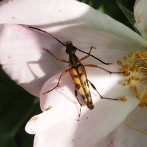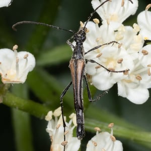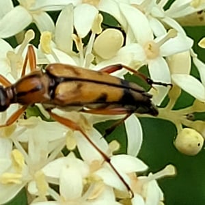 Strangalia famelica is a species of longhorn beetle found in various regions around the world. It is characterized by its elongated body, measuring around 10-20 millimeters in length, and its distinctive coloration of black with yellow or orange markings. This insect is known for its voracious appetite, primarily feeding on the bark and wood of various tree species. Its name, famelica, is derived from the Latin word for hunger, reflecting its insatiable appetite.