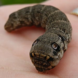 D. porcellus is often confused with Deilephila elpenor, the elephant hawk moth. D. porcellus is the smaller of the two species, and other characteristics in size and coloring can be used to distinguish between the two. For example, D. porcellus has more yellow around its body and lacks the thick pink stripe that goes down D. elpenor abdomen.