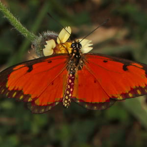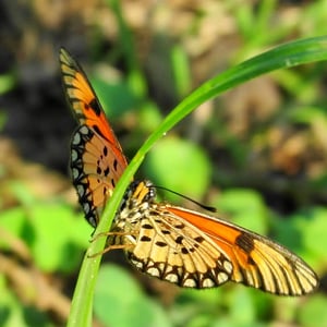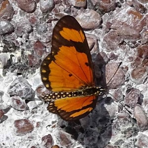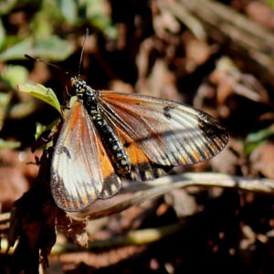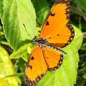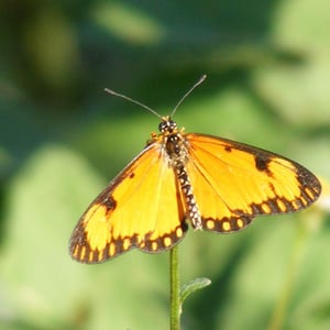 Acraea serena, the dancing acraea, is a butterfly of the family Nymphalidae. It is found in South Africa, including the area near the Waterberg Biosphere. But it is found also in the whole Africa south of the Sahara. It is the most common of the Acraea, from Dakar to Fort-Dauphin, from Yemen to the Cape. This is the type species of the old genus Telchinia, which may warrant re-separation from Acraea. Formerly, A. serena was often misidentified as Acraea eponina (small orange acraea) or Acraea terpsicore (tawny coaster). It is very likely that the butterfly's black-spotted orange markings are a sign of unpalatability and it may well form part of a mimicry ring with Erikssonia edgei.
