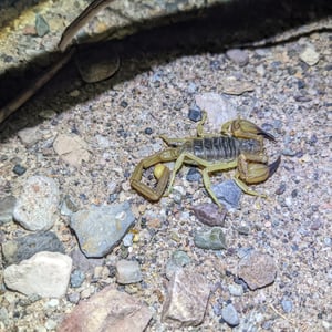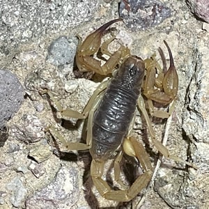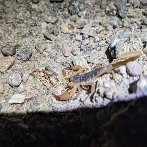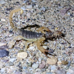 Smeringurus vachoni is a species of insect commonly known as the Vachon's desert scorpion. It is found in the southwestern United States, particularly in the Sonoran Desert. This scorpion species is characterized by its robust body, reaching lengths of up to 3 inches, and its distinctive dark brown coloration. It is known for its venomous sting, which it uses to immobilize its prey.