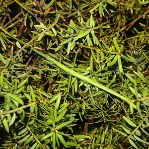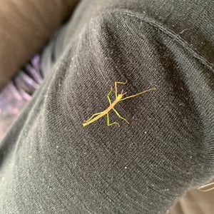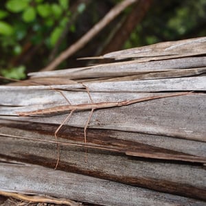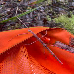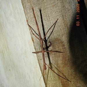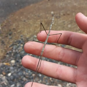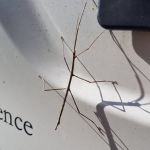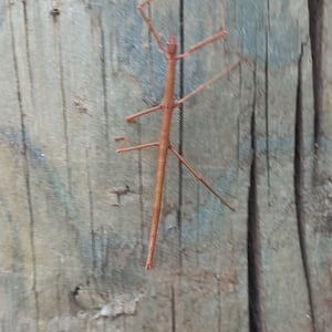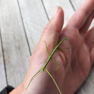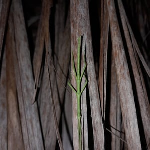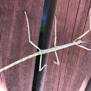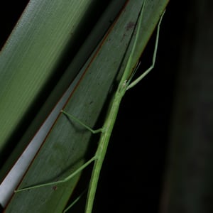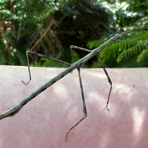 Clitarchus hookeri is a large stick insect. This species demonstrates sexual dimorphism. Female specimens grow from 81 – 106 mm and males from 67 – 74 mm. The colour can be variable, even in the same location, ranging from bright green to grey, brown or buff. Unlike many tropical stick insects, Clitarchus hookeri is flightless.
