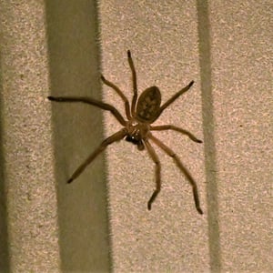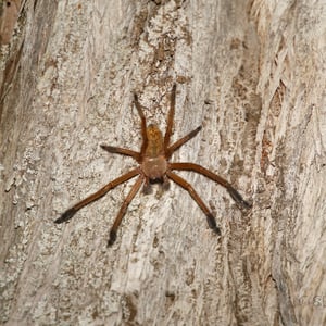 Highly unusual among spiders, the flat huntsman spider is a social species, even sharing prey. They are often found under loose bark (their flat shape is an adaptation for this) in colonies up to 300, but they are highly aggressive and commonly cannibalistic toward members from other colonies. They hunt their food rather than spin webs for it. They are timid towards humans and bites are infrequent, and when they occur, symptoms are usually very minor.