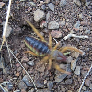 Solpuga, also known as the sun spider or wind scorpion, is a fascinating insect belonging to the order Solifugae. It is characterized by its large size, with some species reaching up to 6 inches in length. Solpugas have a unique appearance, with a pair of large chelicerae resembling pincers and long, spindly legs. They are primarily nocturnal predators, feeding on small insects and other arthropods.