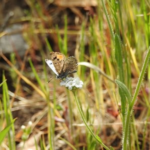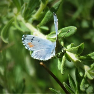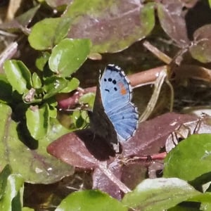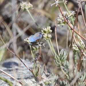 Philotes is a genus of butterflies in the family Lycaenidae. Philotes is a monotypic genus containing only Philotes sonorensis, the Sonoran blue or stonecrop blue, found in North America in California and Baja California. The habitat consists of rocky washes, outcrops and cliffs in deserts. The wingspan is 22–25 mm. The upperside is silvery blue with red spots at the outer margin of the forewings. Females also have red spots on the hindwings. Adults are on the wing in February and March, with just one generation per year. The larvae feed on Dudleya species, including D. cymosa, D. lanceolata and D. saxosa. They bore into the leaves of their host plant. Chrysalids hibernate under stones.
