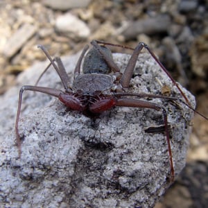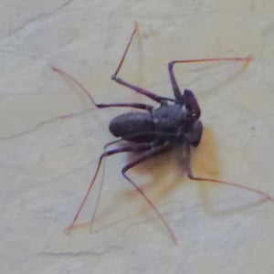 Paraphrynus mexicanus, commonly known as the Mexican whip scorpion, is an arachnid belonging to the order Thelyphonida. It is found in Mexico and parts of Central America. This insect has a unique appearance with a long, whip-like tail and large pincers, but it is harmless to humans. It primarily feeds on small insects and is known for its nocturnal behavior.