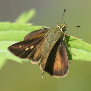 Wallengrenia egeremet, the northern broken dash , is a butterfly of the family Hesperiidae. It is found in North America from southern Maine and southern Ontario, west across the Great Lakes states to southeastern North Dakota, south to central Florida, the Gulf Coast and south-eastern Texas. The wingspan is 25–39 mm. Adults are on wing from June to August in one generation in most of the range. There are two generations with adults on wing from May to October in the deep south and eastern Texas. The larvae feed on various Panicum species, including Panicum clandestinum and Panicum dichotomum. Adults feed on the nectar from various flowers, but they prefer white, pink or purple flowers, including dogbane, red clover, New Jersey tea and sweet pepperbush.